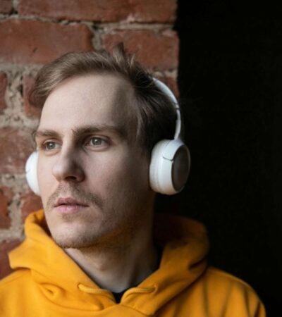 A person holds a smartphone displaying the Uber logo on the screen. The phone is oriented vertically and appears to be in use. The person is dressed in a light-colored sleeve, and the background is a neutral, blurry surface.
